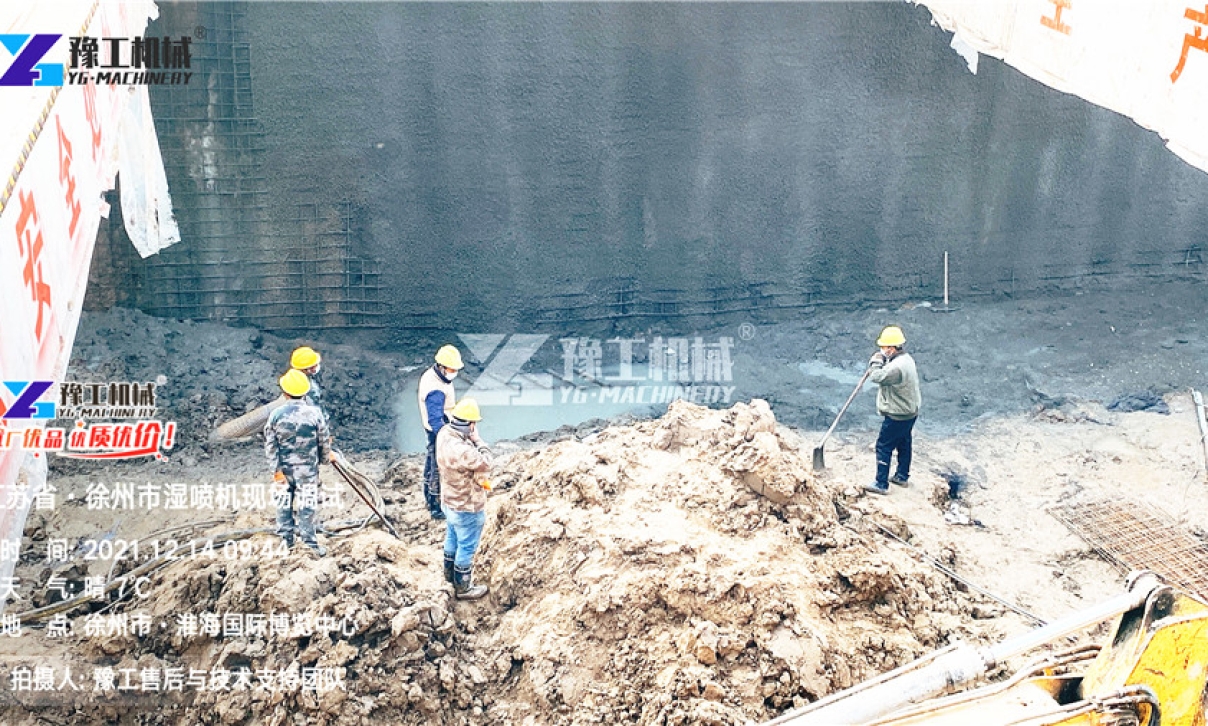 徐州奧體中心地鐵站項目,由中鐵十八局承建,此次訂購的液壓濕噴機主要用于地鐵基坑支護施工。客戶之前訂購的轉子式噴漿機,因為工人反饋一直有堵管現象,影響工期,不得已重新訂購!為保證客戶工期不誤,工廠安排物流發專車連夜為客戶送貨。在與發貨部確認設備到達的時間后,豫工售后與技術支持部工程師喬工乘高鐵從鄭州出發,在設備送抵工地的第一時間趕到客戶工地——徐州中鐵十八局奧體中心地鐵站施工現場。作為對風量、混凝土漿料要求很高的設備,試機過程中,液壓濕噴機采用骨料粒徑15mm,混凝土塌落度150-180的混凝土漿料,配合16/10型空壓機,設備水平輸送距離輕松達到80米,垂直噴射距離達到50米,生產能力每小時7立方。
