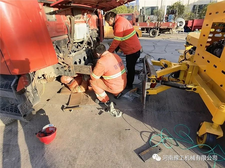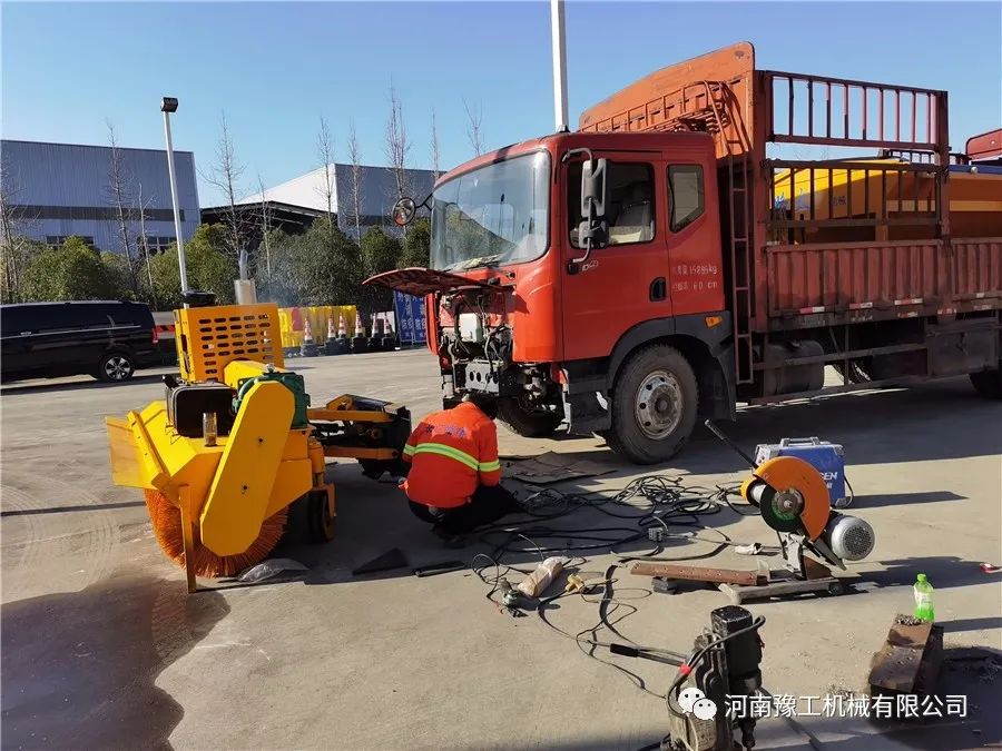 11月10日,在設備到達客戶工地的同時,豫工技術支持部劉工一早到達客戶工地。由于客戶訂購的是自帶動力的雪滾系列,安裝調試相對比較簡單,拆下保險杠 安裝支架 連接電源線,即完成調試工作。